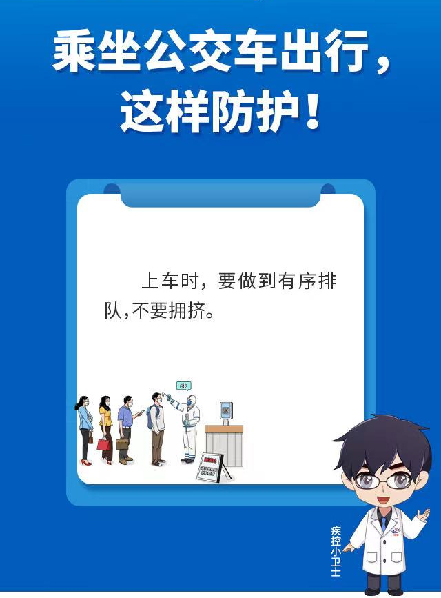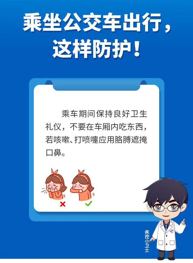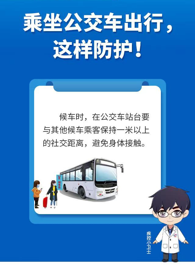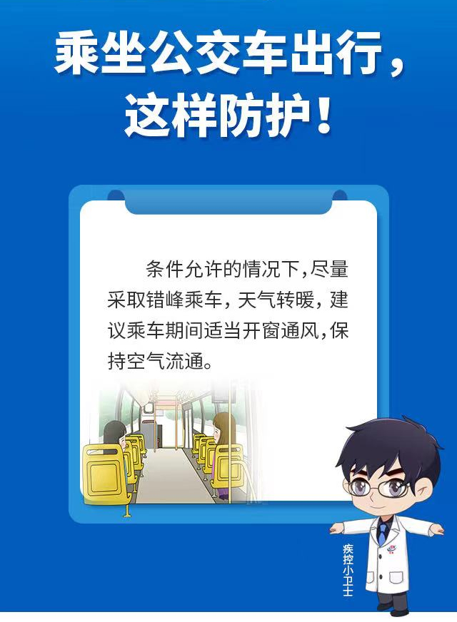 公交車是市民出行的重要公共交通工具,濟南市疾控中心提醒市民,在乘坐公交車出行時,應配合公交部門采取的疫情防控措施,全程規(guī)范佩戴口罩。還要做好以下幾點防護: